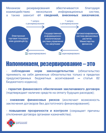 с 20 октября 2025 г. при проведении процедуры закупки из одного источника на ЭТП (в соответствии с постановлением Совета Министров от 08.05.2025 № 252 «О случаях и порядке проведения процедуры закупки из одного источника на электронной торговой площадке») осуществляется предварительное резервирование бюджетных средств в органах государственного казначейства.