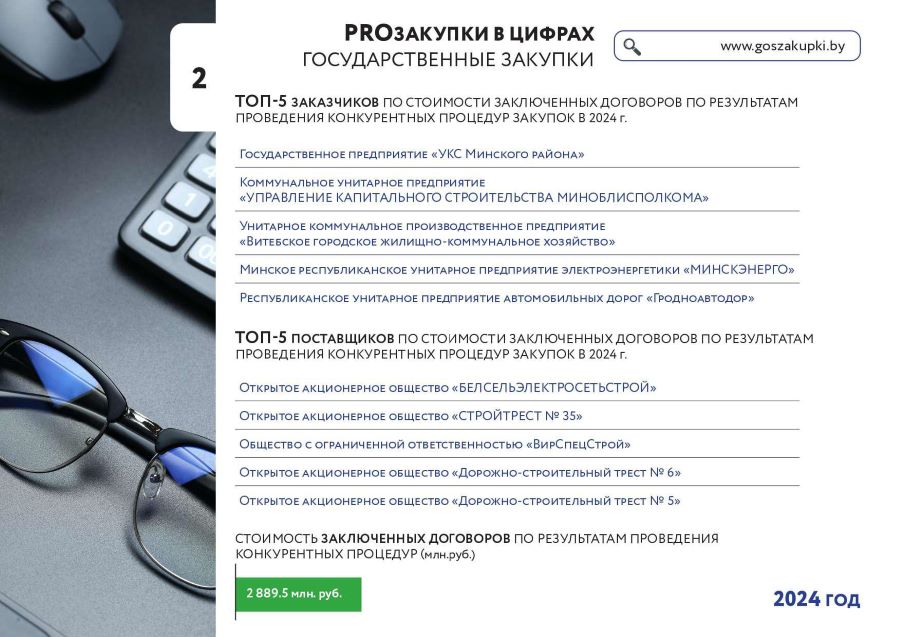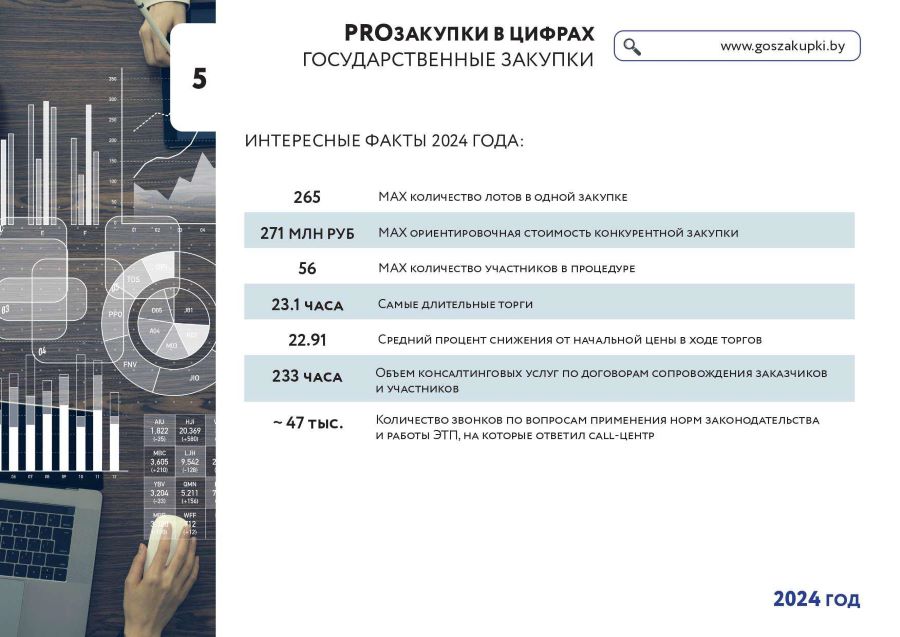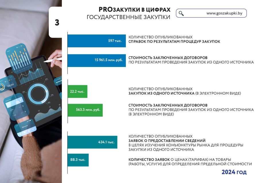 Национальный центр маркетинга подготовил материалы о работе электронной торговой площадки www.goszakupki.by в цифрах за 2024 год в части обеспечения осуществления государственных закупок