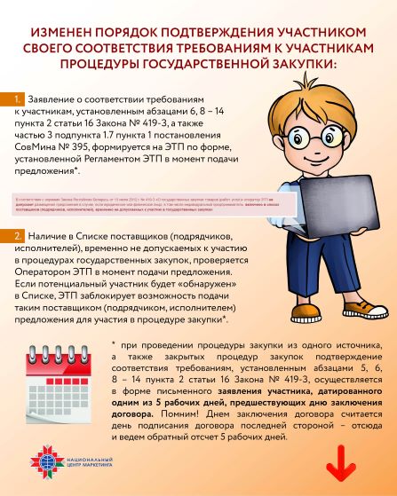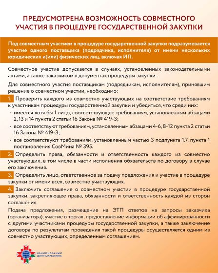 3.Кроме того, установлен порядок подтверждения отнесения организации к субъектам МСП при участии в процедуре госзакупки; усилен контроль за предоставлением конкурсного/аукционного обеспечения; появилась возможность совместного участия в процедуре госзакупки.