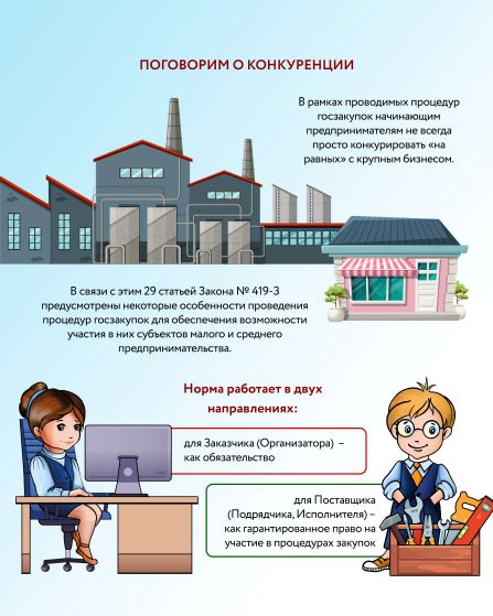 Среди прочих – гарантия предоставления возможности участия МСП в государственных закупках.