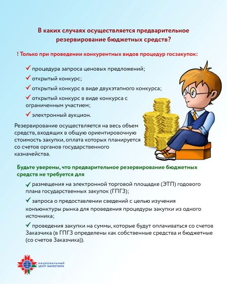 И так как следующим пунктом в Вашем плане будет проведение конкурентных процедур закупок, в новом выпуске расскажем о такой важной и значимой функции, как предварительное резервирование бюджетных средств при осуществлении государственных закупок.