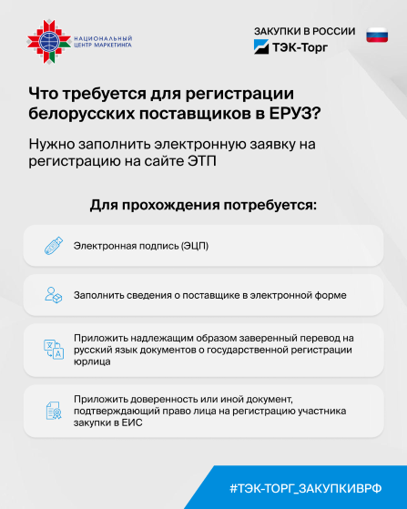 - изучите удобные инструменты и сервисы ЭТП «ТЭК-Торг» для выхода белорусских поставщиков на российский рынок;